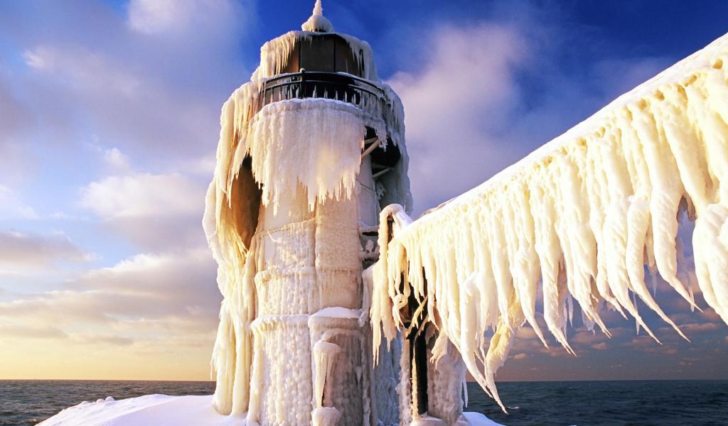 Wallpaper Lighthouse in the frozen icicle