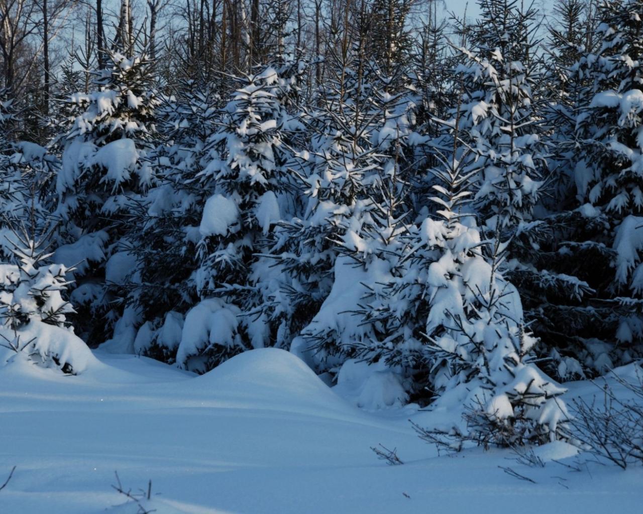 Wallpaper Young forest blocked with the snow