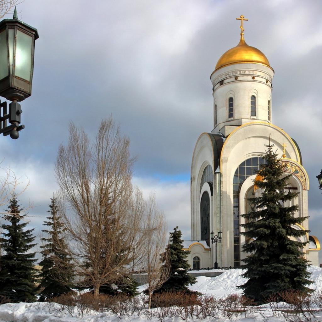 Wallpaper Snow in Moscow near the temple