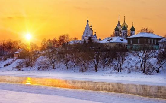 Wallpaper Snow in Moscow Church near the River