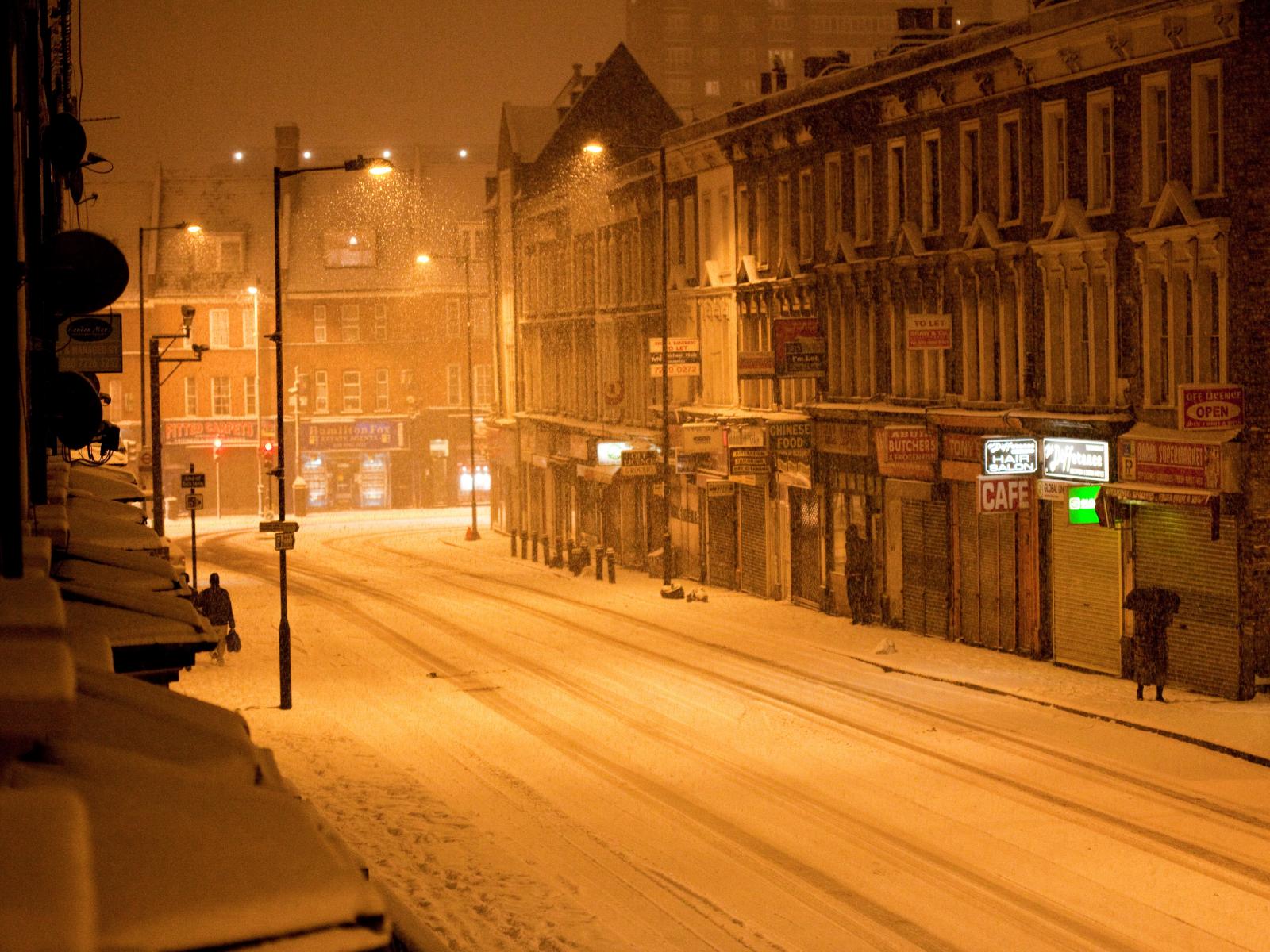 » Wallpaper Snow in London Graham Road at night