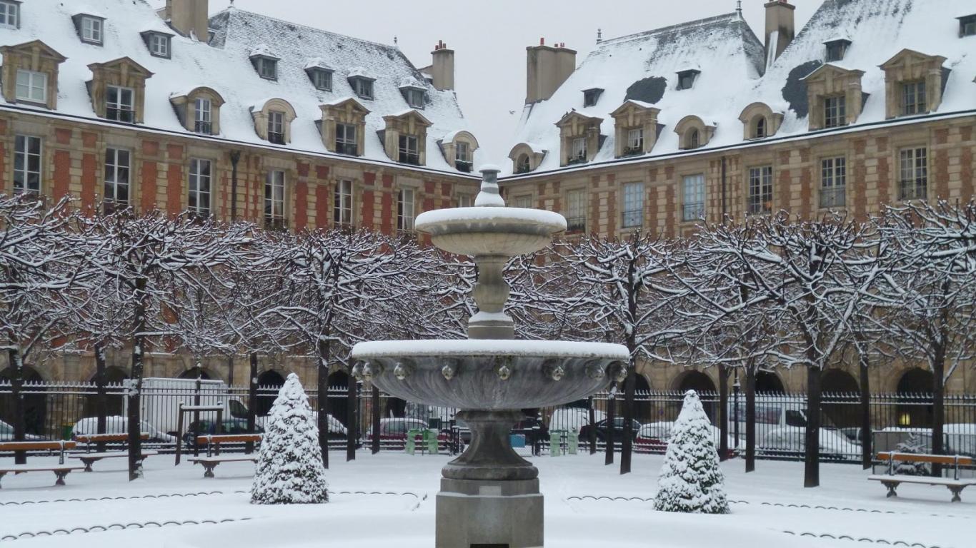 Wallpaper Snow in Paris around the fountain