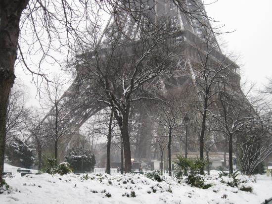 Wallpaper Snow in Paris trees around the Eiffel Tower