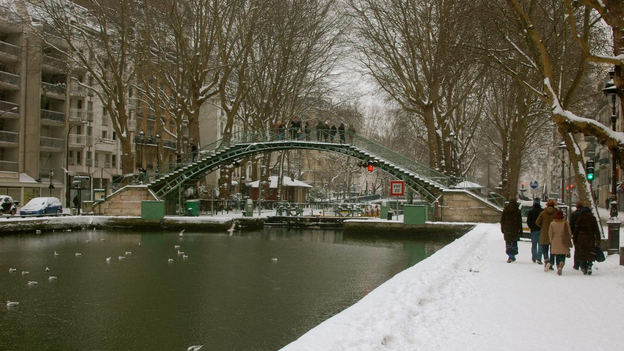 » Wallpaper Snow in Paris bridge over the Seine