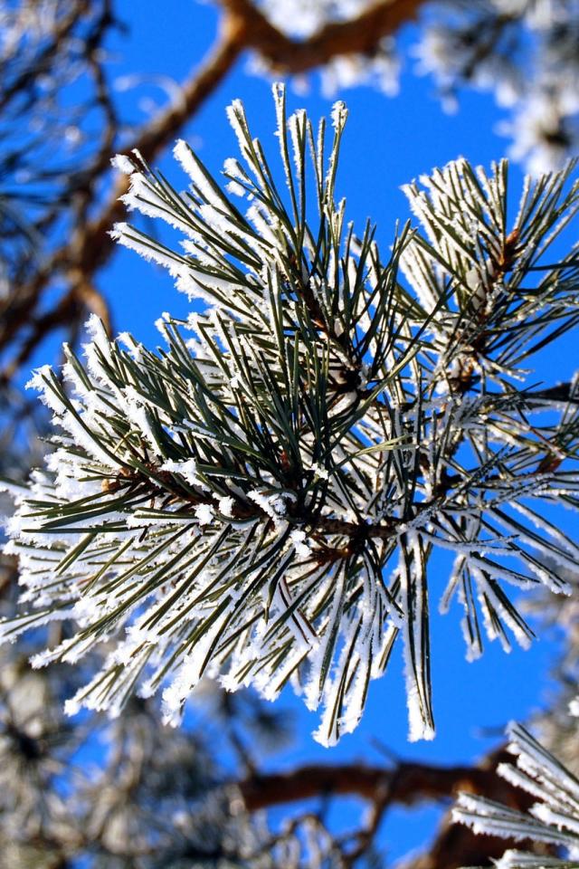 Wallpaper Pine branch in the snow