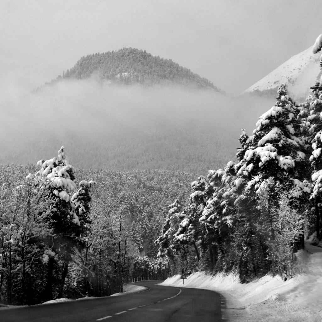 Wallpaper Winter road on a mountain slope