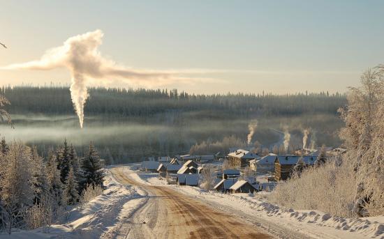 Wallpaper Winter road and the village