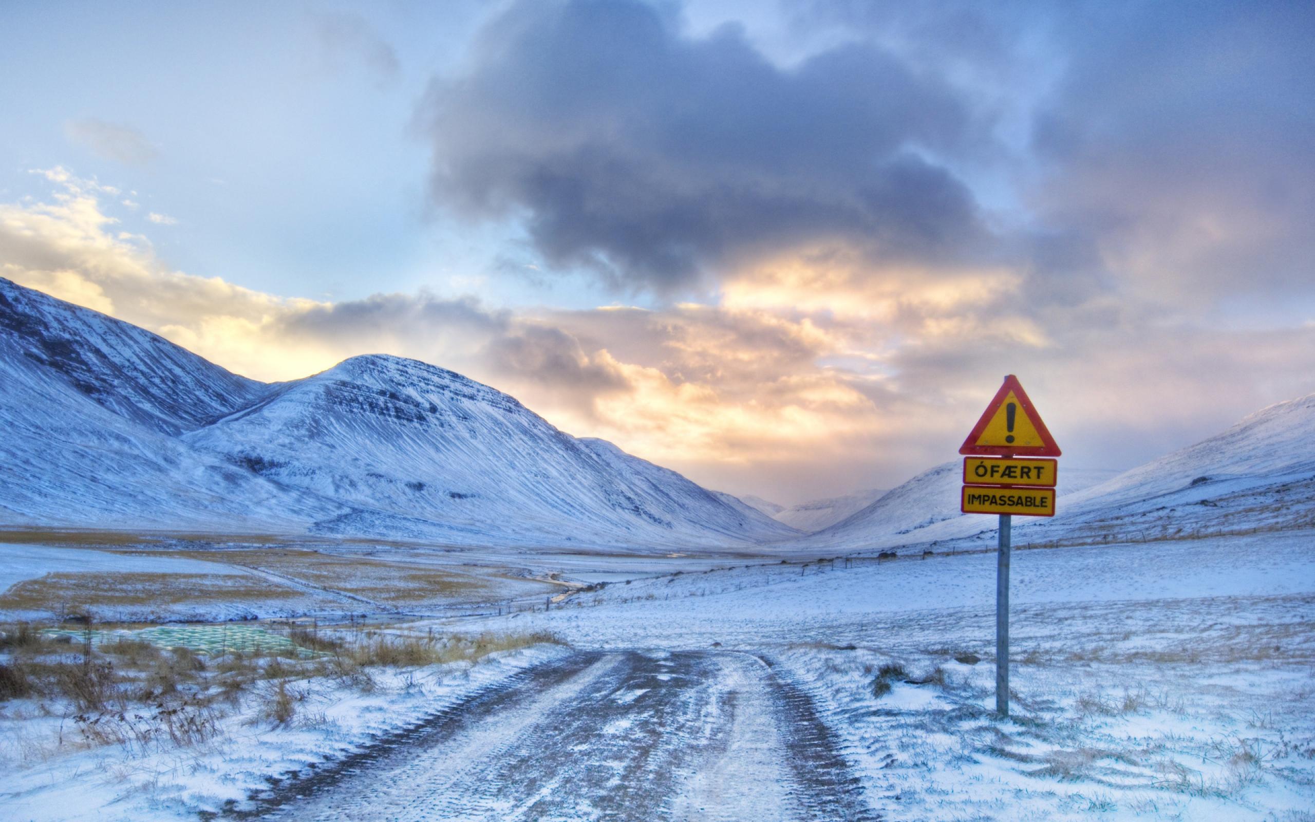 Wallpaper Winter road in the mountains in the evening