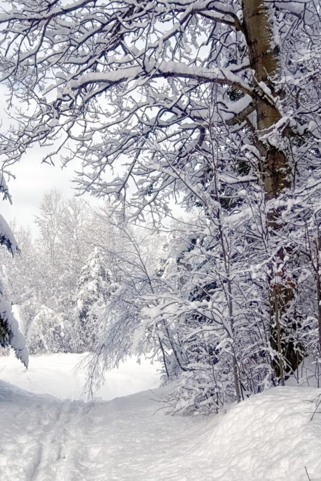Wallpaper Winter road in the dense forest