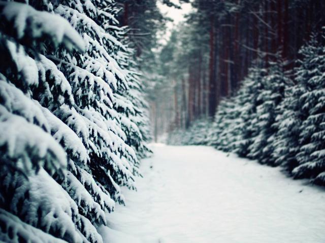 Wallpaper Winter road among coniferous trees