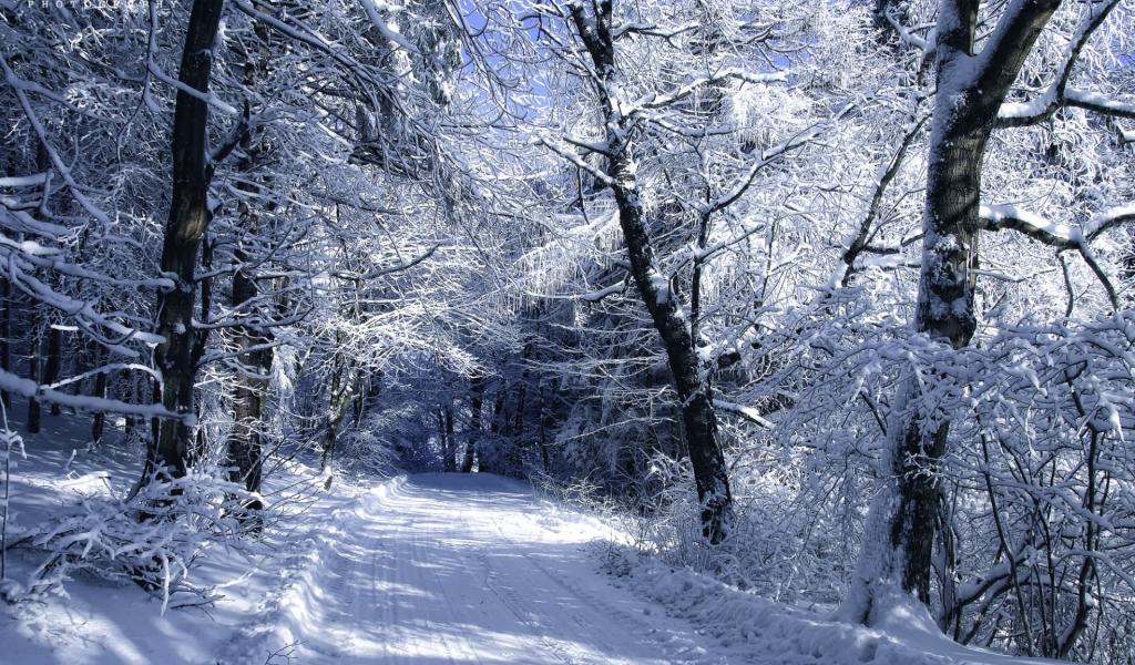 Wallpaper Winter road in the white forest