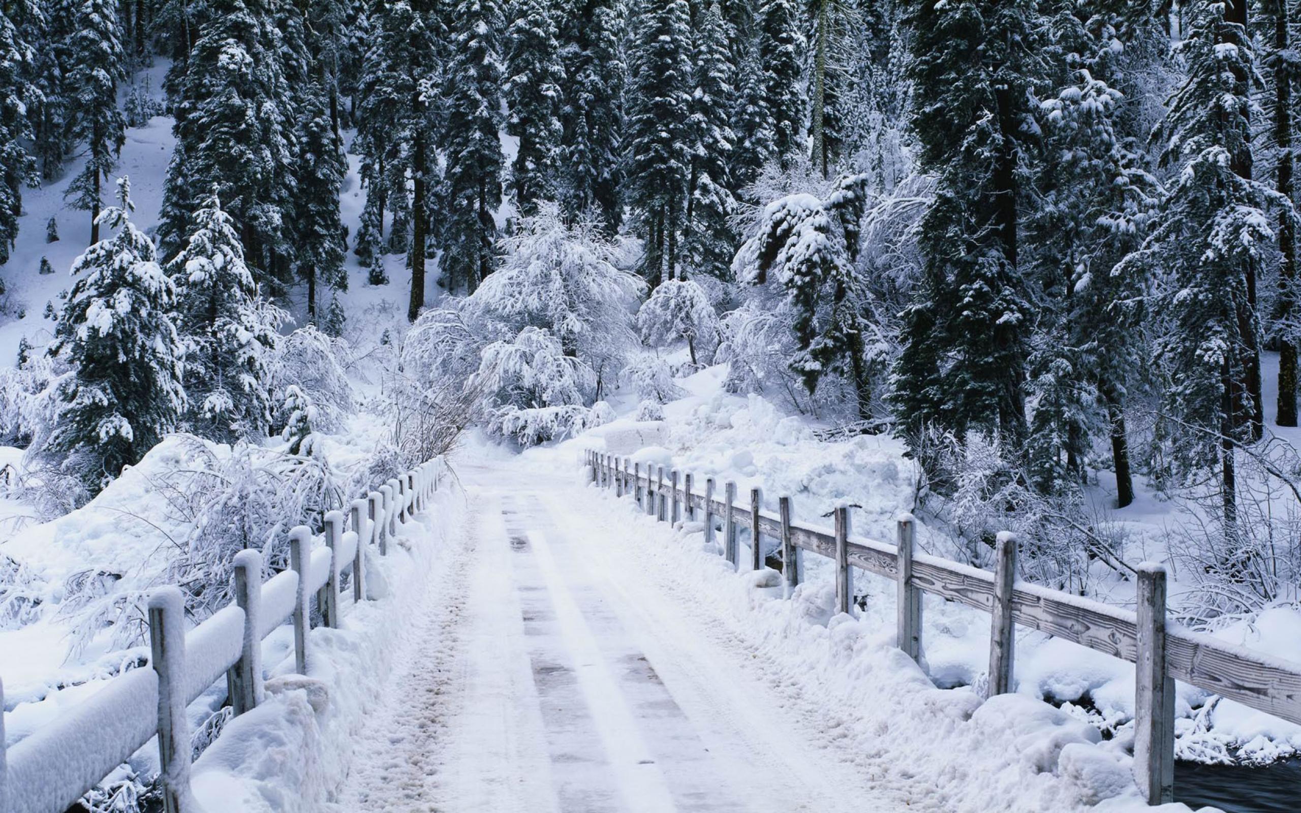Wallpaper Winter road over the river