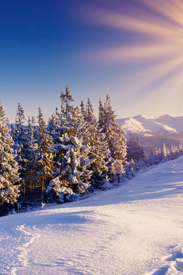 Wallpaper Mountain winter forest