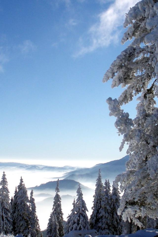 Wallpaper Winter forest high in the mountains