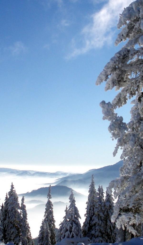 Wallpaper Winter forest high in the mountains