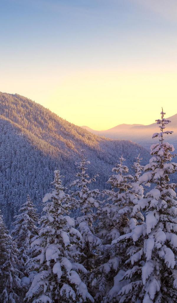 Wallpaper Winter forest in hilly terrain