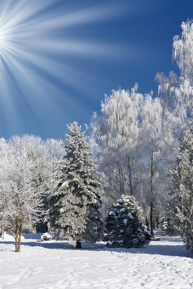 Wallpaper Winter forest in the sunlight