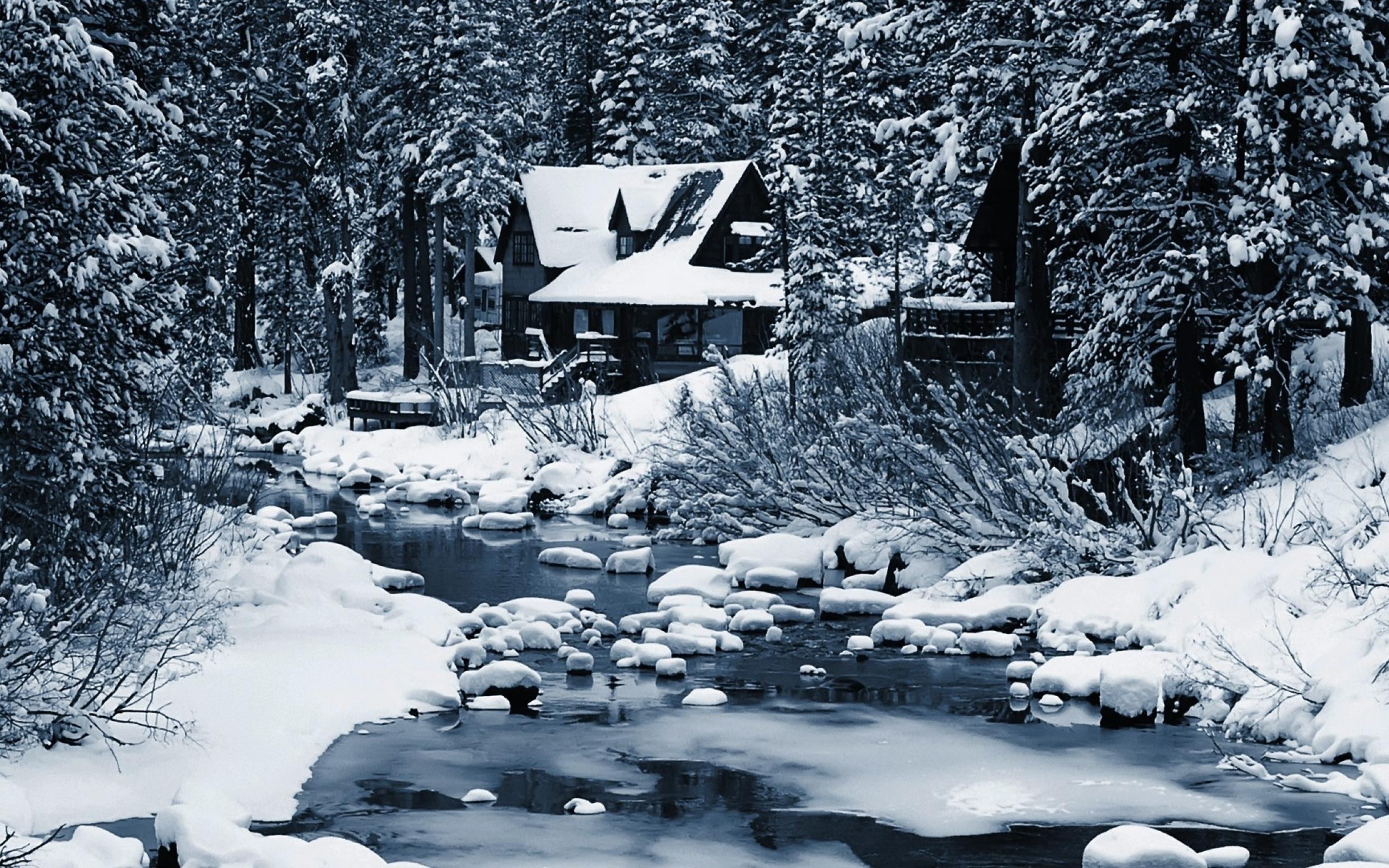 Wallpaper A lonely house in winter forest