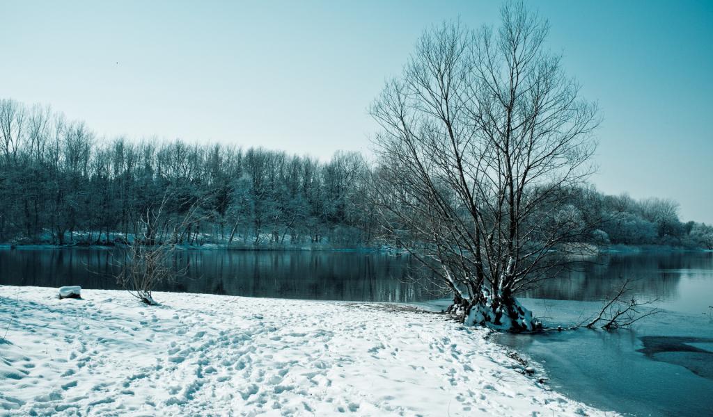 Wallpaper Snow-covered island with a church in the middle of the lake