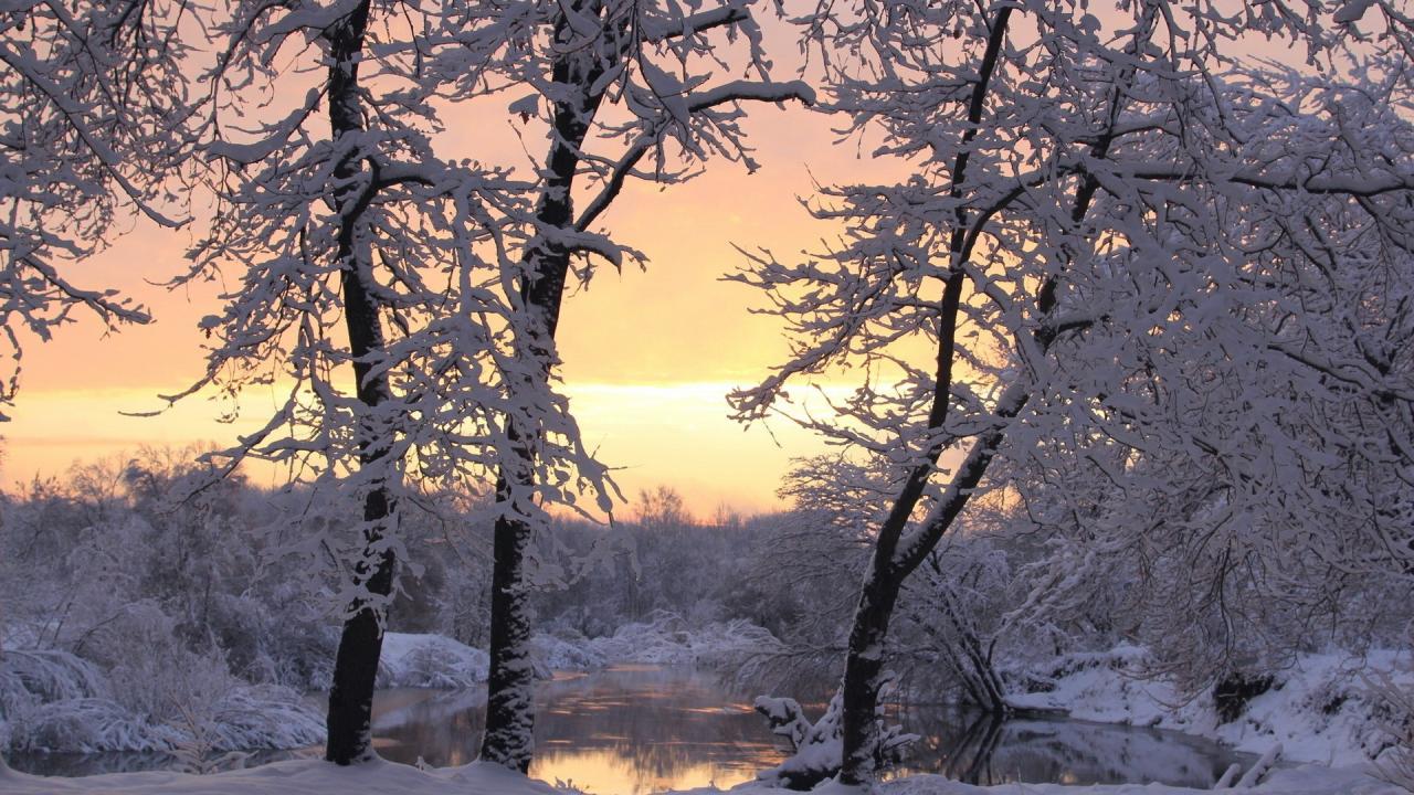 Wallpaper Snow-covered trees at the lake
