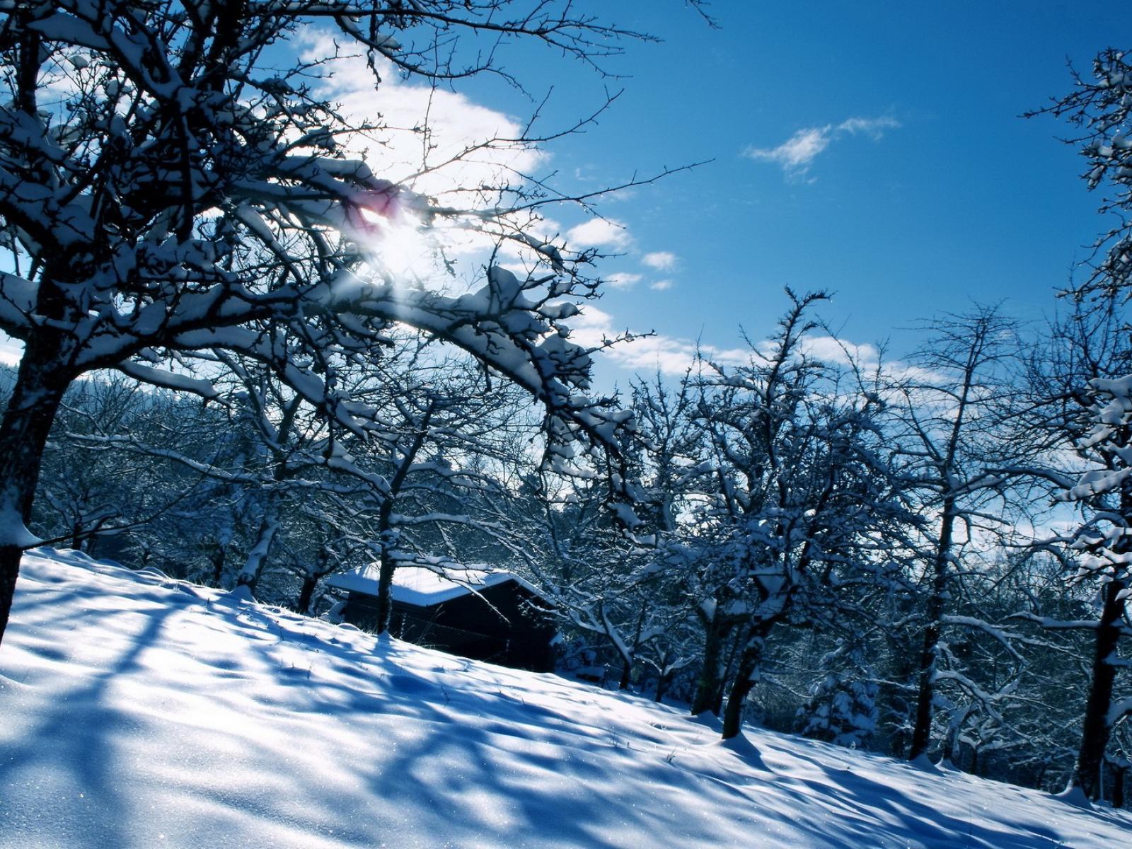 Wallpaper House in the snow-covered garden