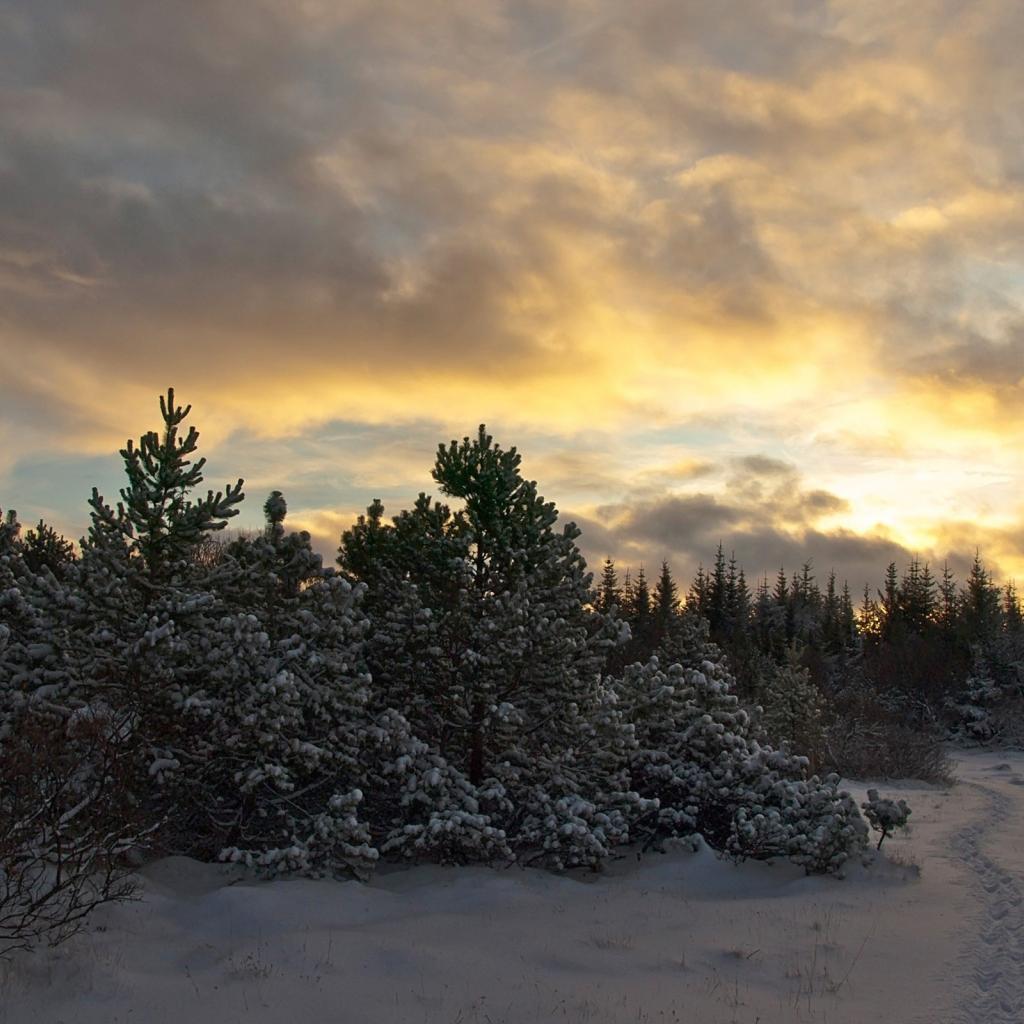 Wallpaper Sunset in a young forest
