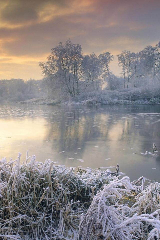 Wallpaper Covered with hoarfrost grass