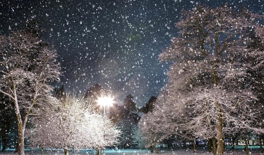 Wallpaper Lantern illuminates the snow-covered forest