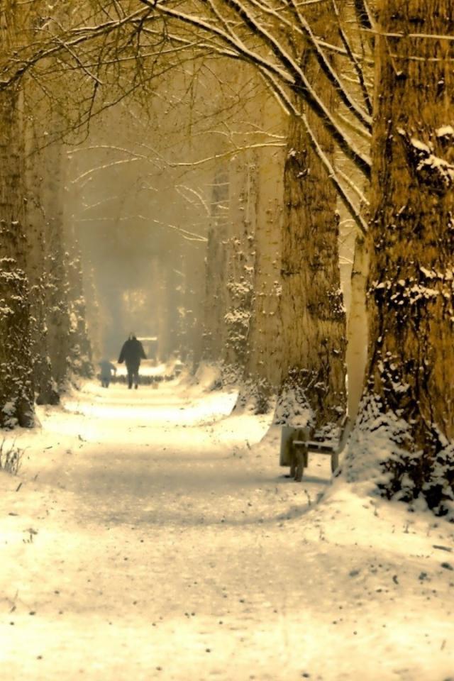 Wallpaper Alley of large trees in the snow