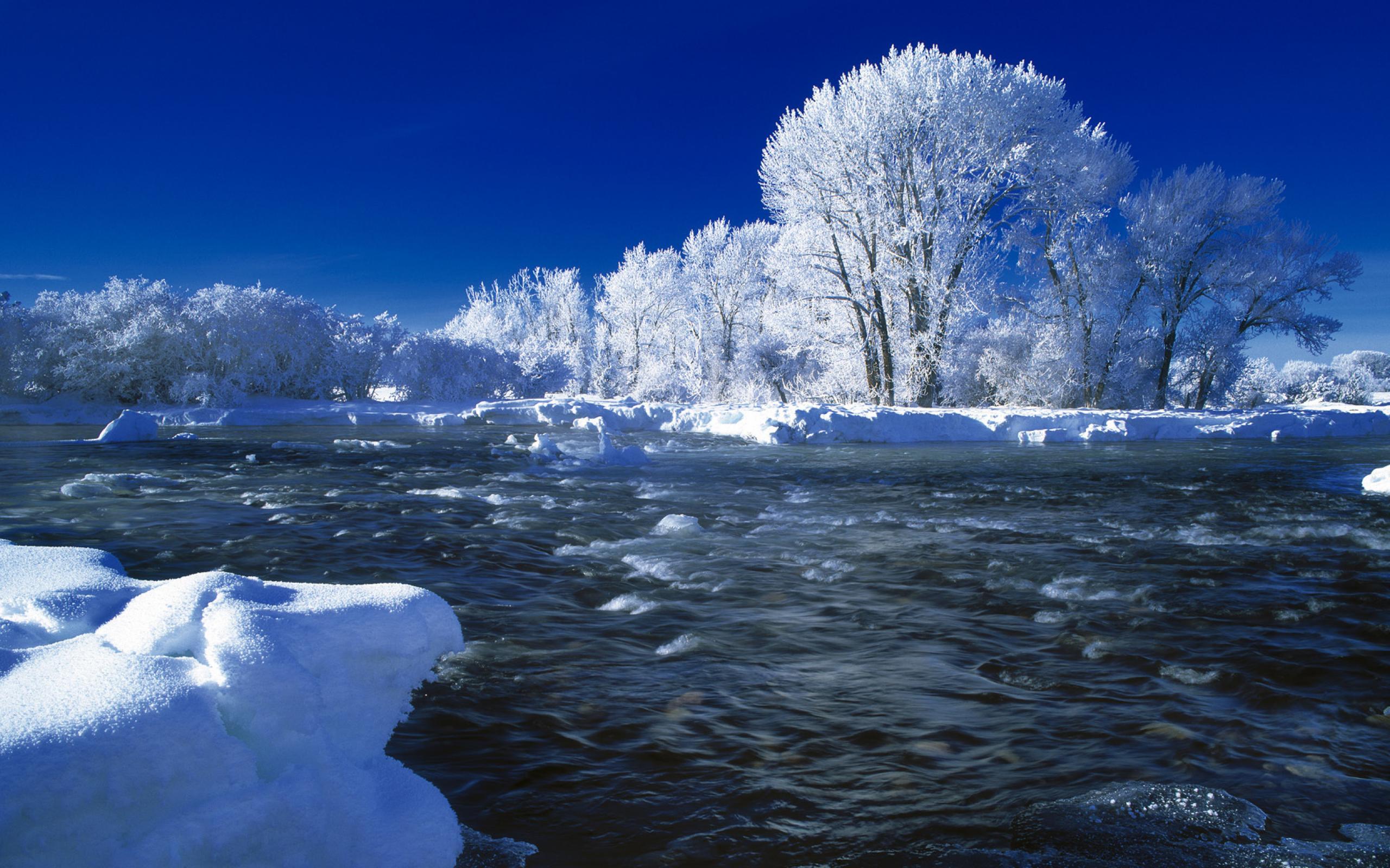 Wallpaper Snow, Trees, Snow-capped mountains, Mountain lake, Relax