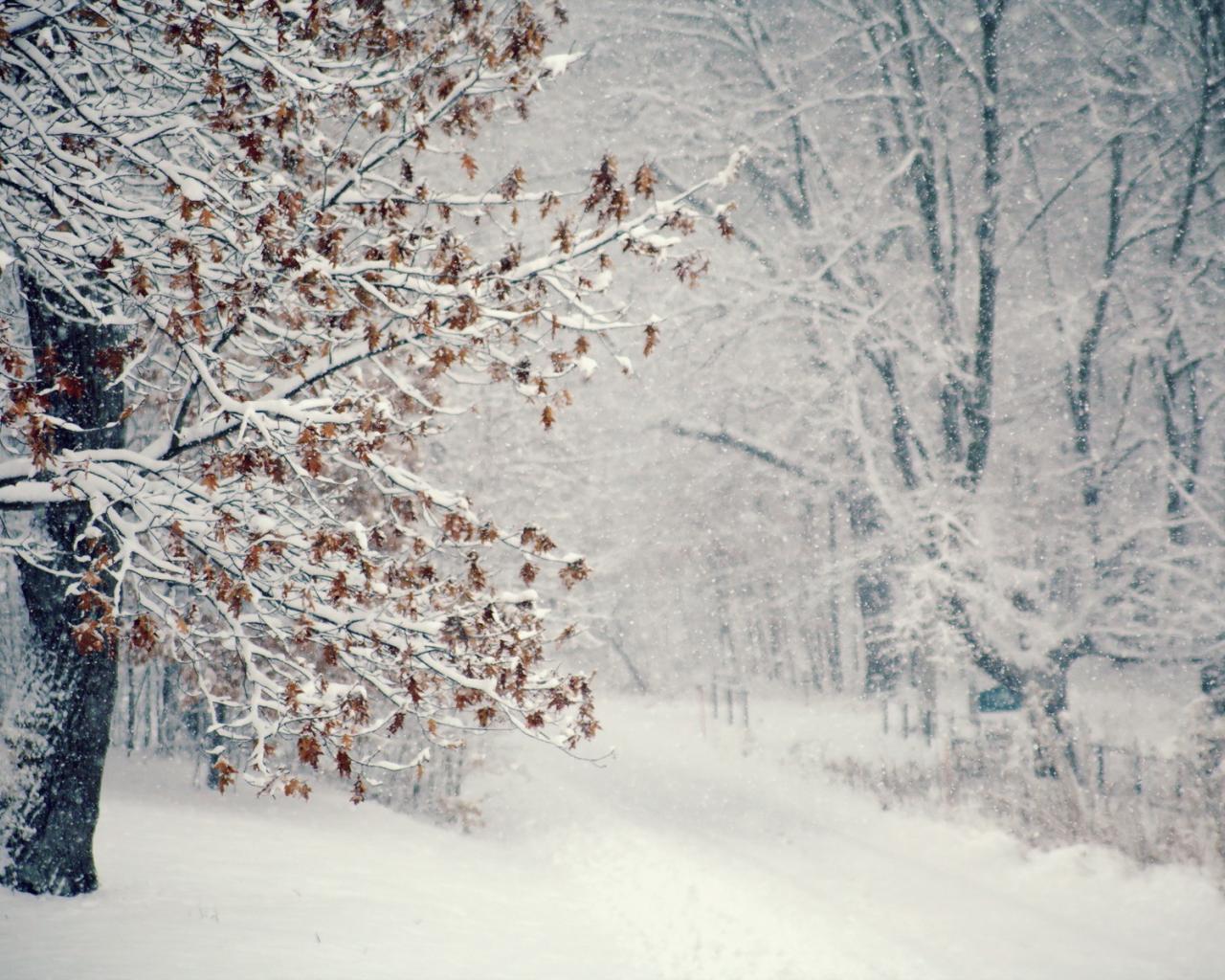 Wallpaper Snow, Trees, Leaves
