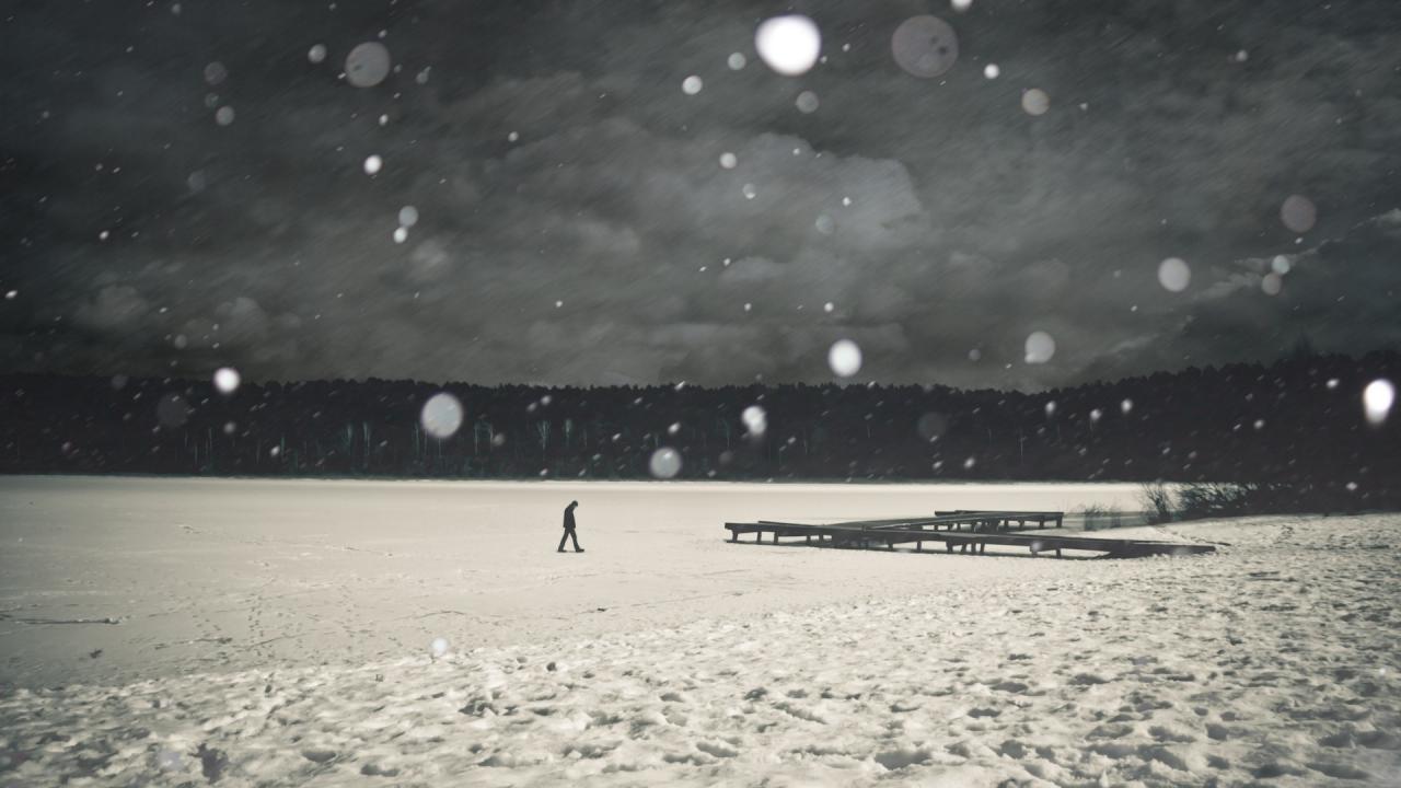 Wallpaper Snow, Lake, Lonely man, Loneliness