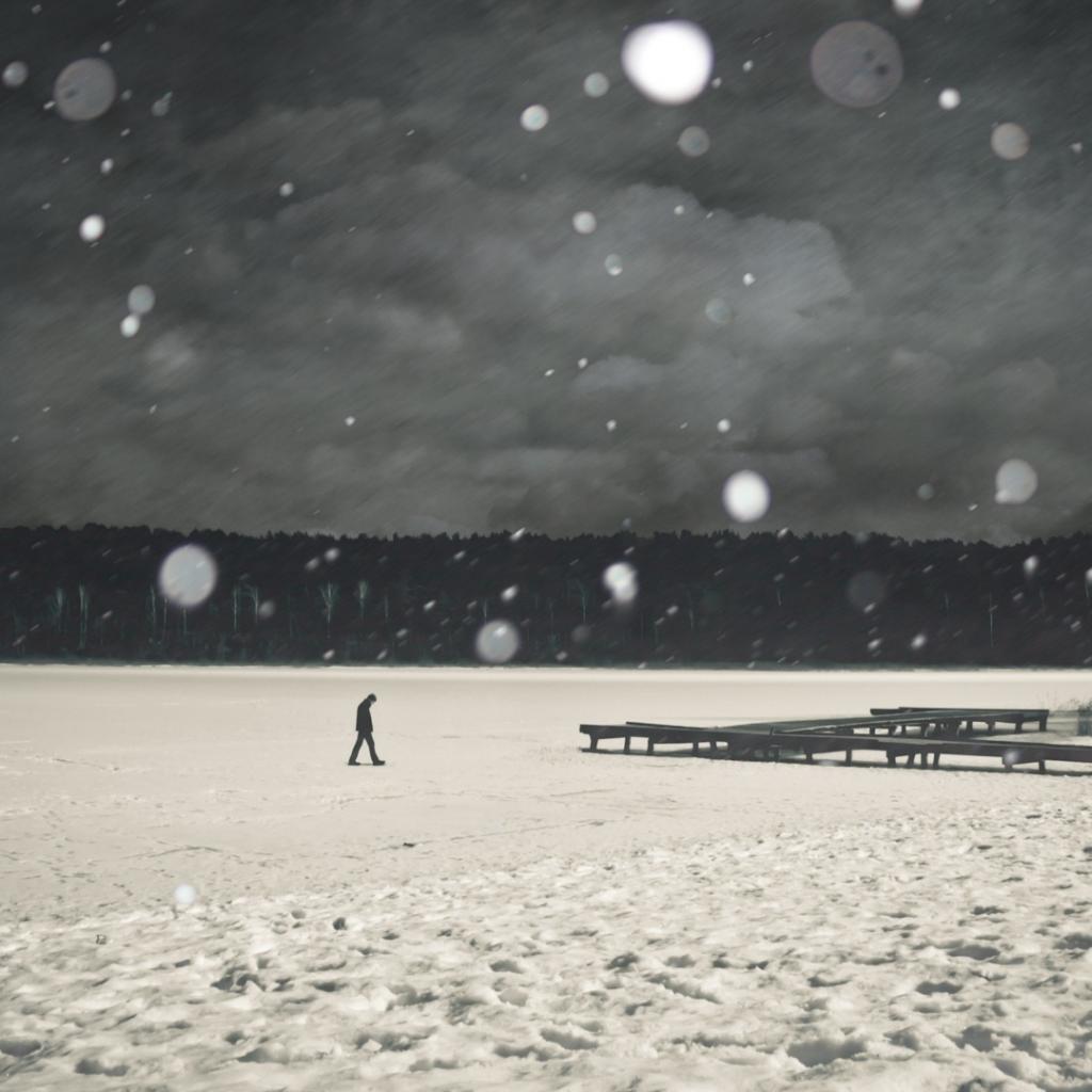 Wallpaper Snow, Lake, Lonely man, Loneliness