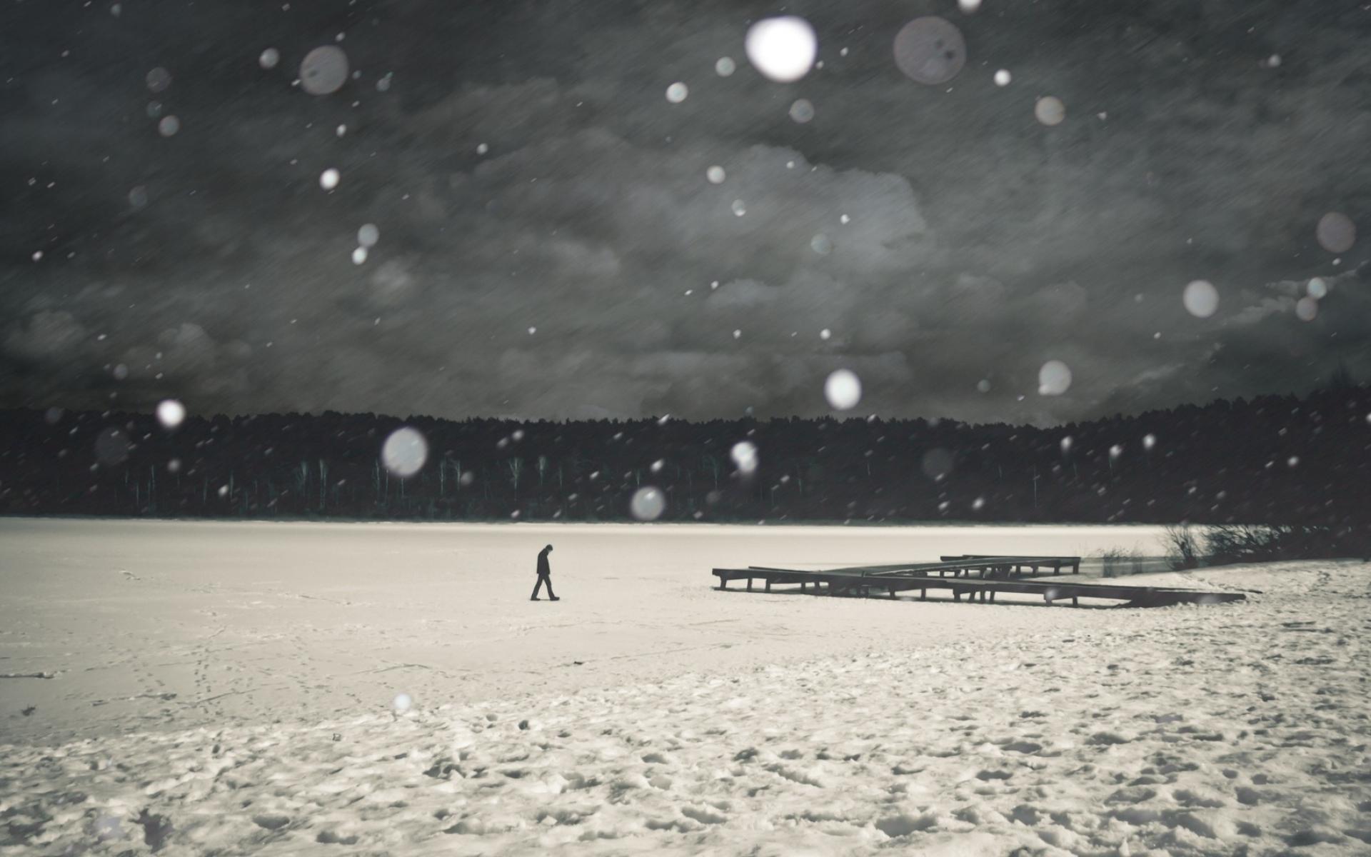 Wallpaper Snow, Lake, Lonely man, Loneliness
