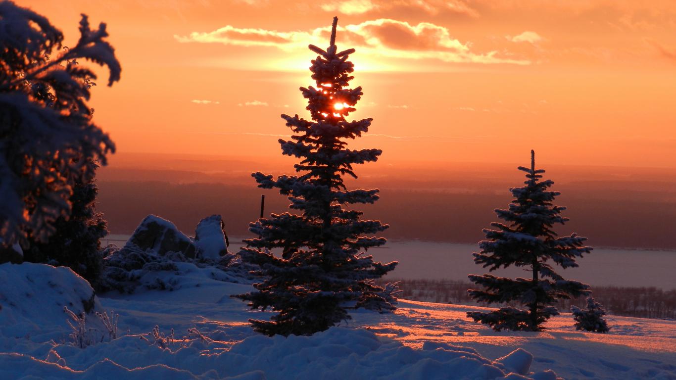 » Wallpaper Sky, Snow, Trees, Sun