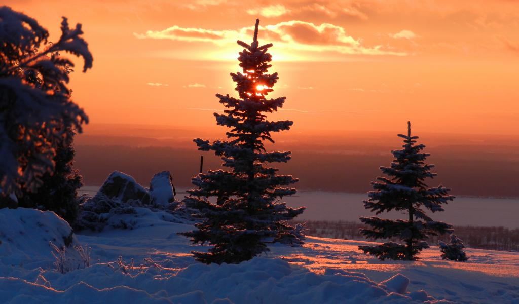 Wallpaper Sky, Snow, Trees, Sun