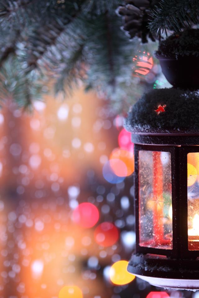 Wallpaper Snow-covered tree in a cozy room on Christmas
