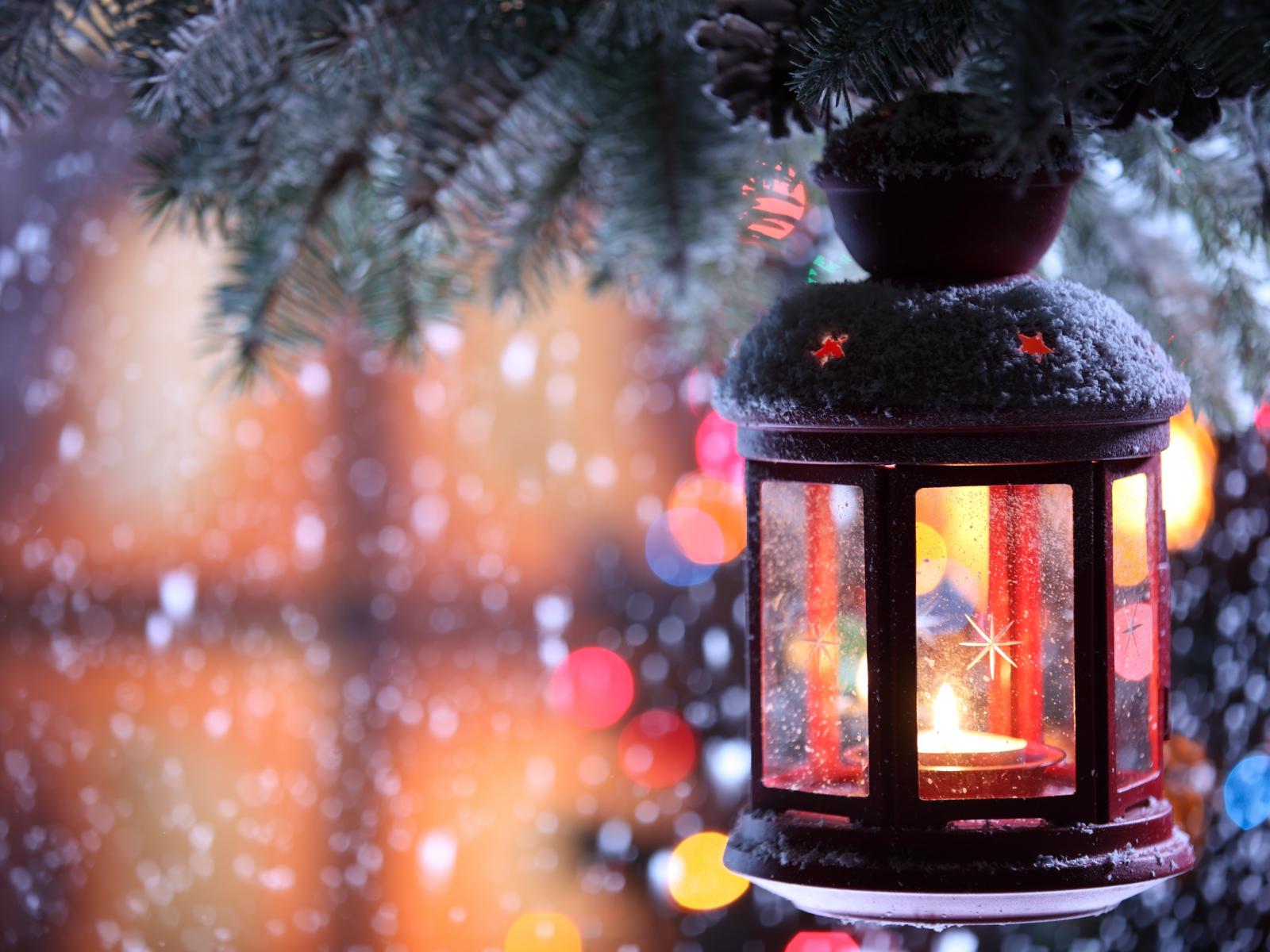 Wallpaper Christmas tree in the snow and lights