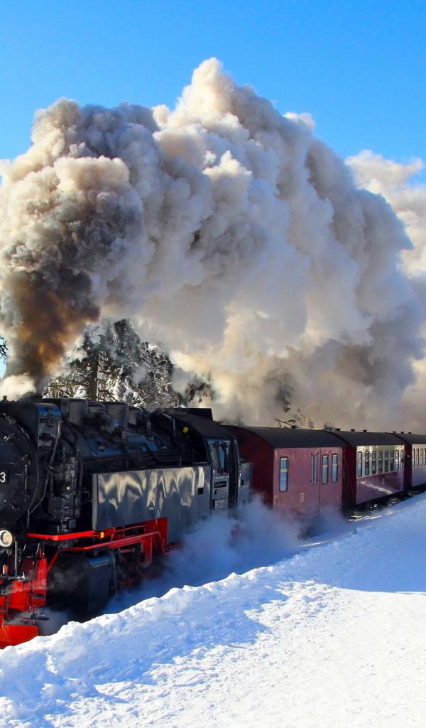 Wallpaper Snow, Trees, Smoke, Retro, Train