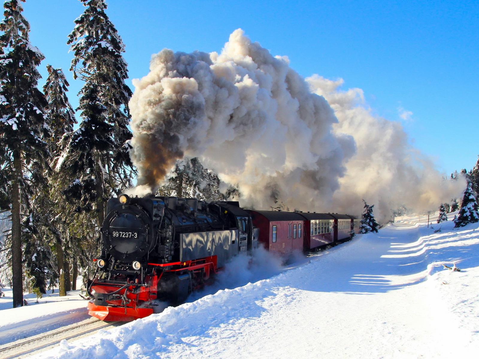 Wallpaper Snow, Trees, Smoke, Retro, Train
