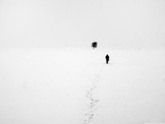 Wallpaper Snow, Lonely man, Bare tree, Loneliness