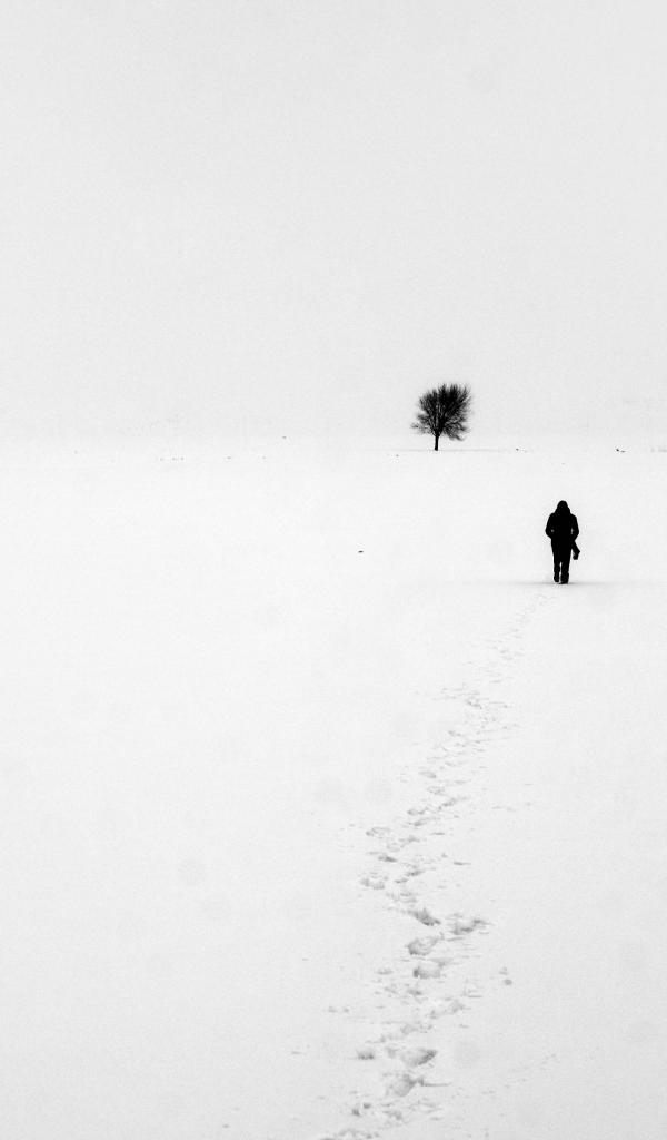 Wallpaper Snow, Lonely man, Bare tree, Loneliness