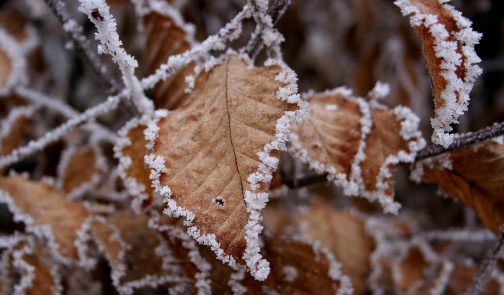 Wallpaper Leaves in hoarfrost