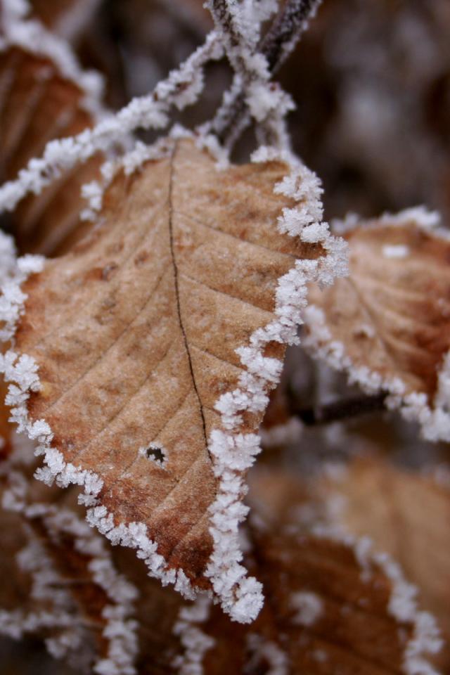 Wallpaper Leaves in hoarfrost