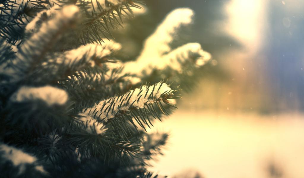 Wallpaper Fir-tree branch in snow