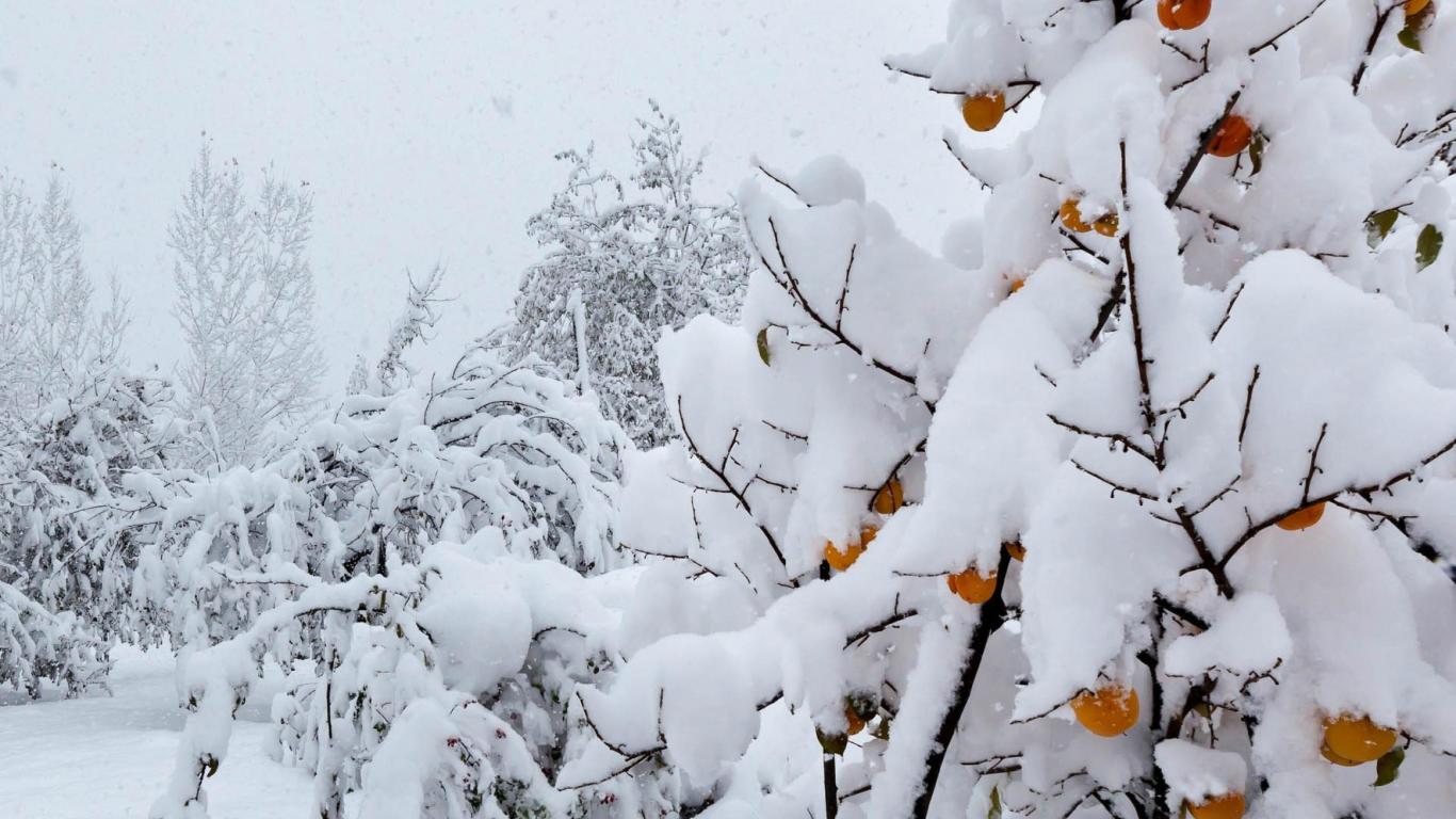 Wallpaper Snow-covered fruit tree