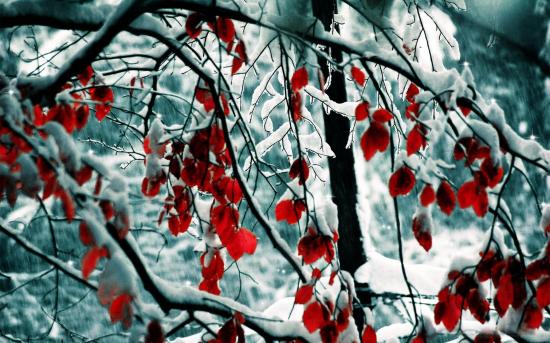 Wallpaper Red leaves in snow