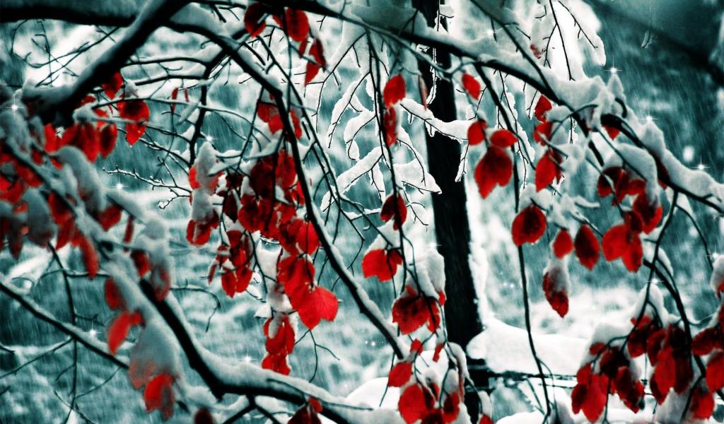 Wallpaper Red leaves in snow
