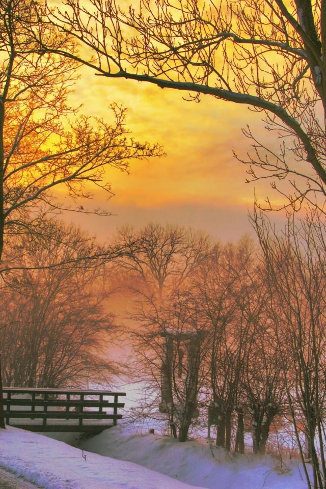 Wallpaper Gold dawn in the winter