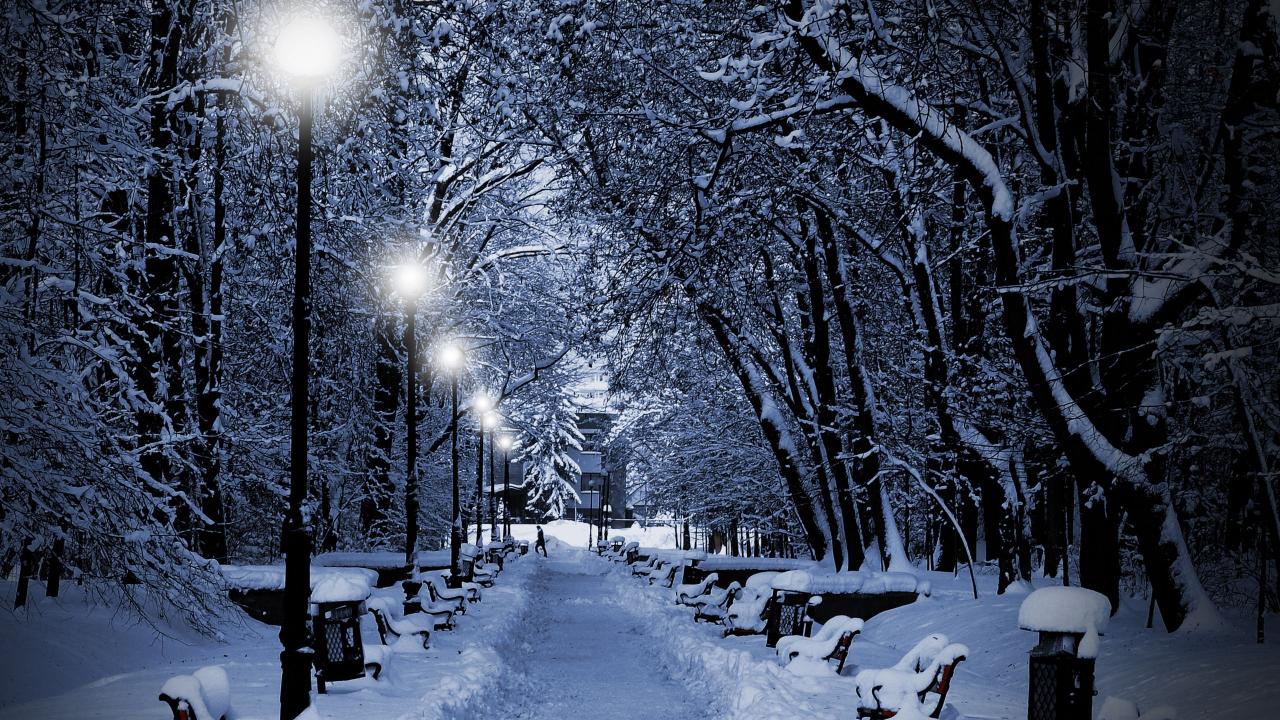 Wallpaper Winter evening on the street
